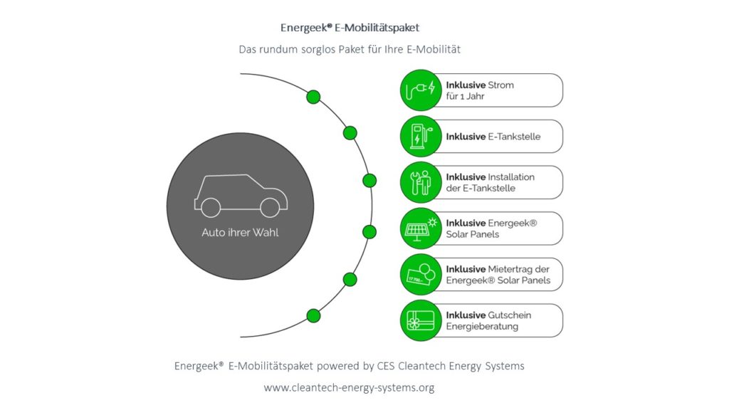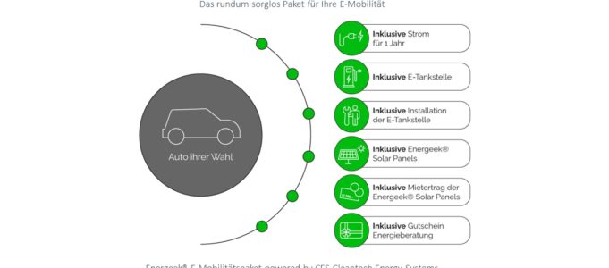 Die Firma Cleantech Energy Systems aus der Schweiz, bietet ab sofort unter der Eigenmarke Energeek® ein neues rundum Sorglos-Paket zur Elektro-Mobilität an. Das Energeek E-Mobilitätsprogramm richtet sich an all diejenigen, die sich ein Auto mit Elektroantrieb zulegen möchten oder bereits besitzen. Die Energeek E-Mobilitätslösungen beinhalten alles, was Kunden für den täglichen Gebrauch ihres Elektro-Wagens benötigen. Vom E-Tankgutschein, über nachhaltigen Strom mit eigenen PV-Panels bis zur eigenen E-Tankstelle.