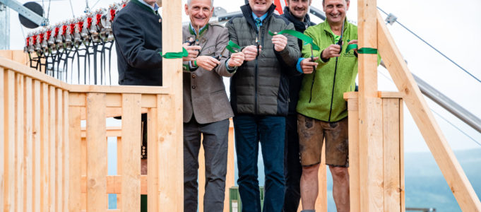 Am Freitag, den 2. Juli 2021, wurden auf der Bürgeralpe Mariazell im Rahmen eines Festakts zwei neue Attraktionen eröffnet: die Waldachterbahn „Flylinas Hexenflug“ und der Waldabenteuerweg „Das Geheimnis des weißen Turms“. Der Landeplatz des 350 Meter langen Flugerlebnisses ist zugleich Startpunkt des 1,3 Kilometer langen, neu gestalteten Familienwanderweges. Nach der Segnung der neuen Waldachterbahn durch Pater Christoph Pecolt nahm die Bahn den Betrieb auf. Den Jungfernflug unternahm Mariazells Bürgermeister Walter Schweighofer. Johann Kleinhofer, Geschäftsführer der Mariazeller Bürgeralpe Seilbahnbetriebs GmbH betonte in seiner Eröffnungsrede die Nachhaltigkeit des Projekts: „Für den Bau der Anlage wurden keine Bäume gefällt. Durch die Aufhängung des Rohrsystems in die Bäume sind diese sogar fixer Bestandteil der Anlage und machen das Flugerlebnis einzigartig.“